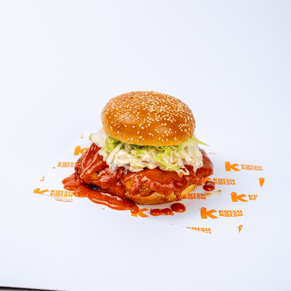 Crispy chicken katsu thigh, topped with lettuce, coleslaw, spicy mayo & tonkatsu sauce.